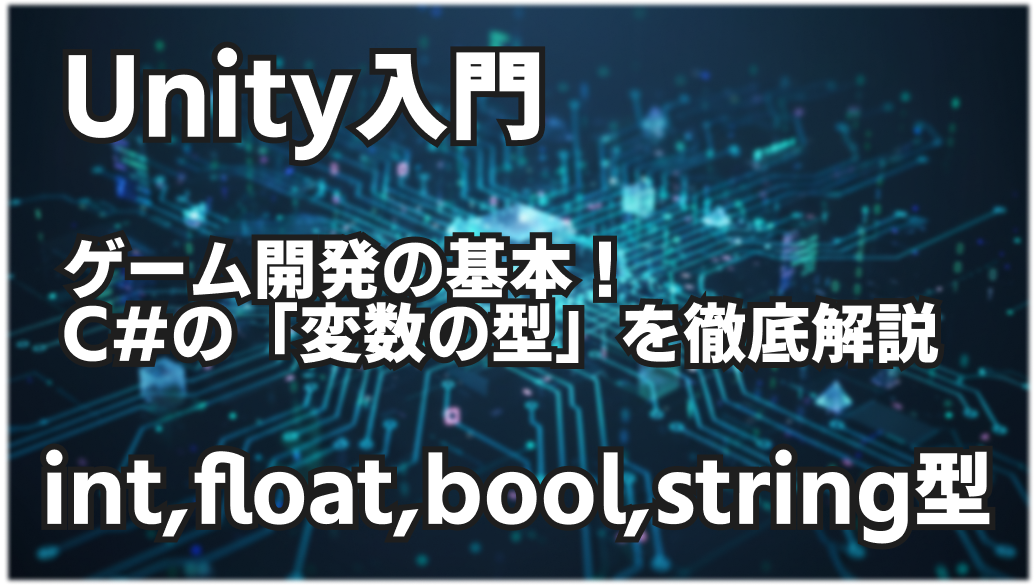 この記事は、Unity開発におけるC#の基本中の基本である「変数の型」に焦点を当て、int, float, bool, stringの4つを具体的なコード例と共に解説しました。